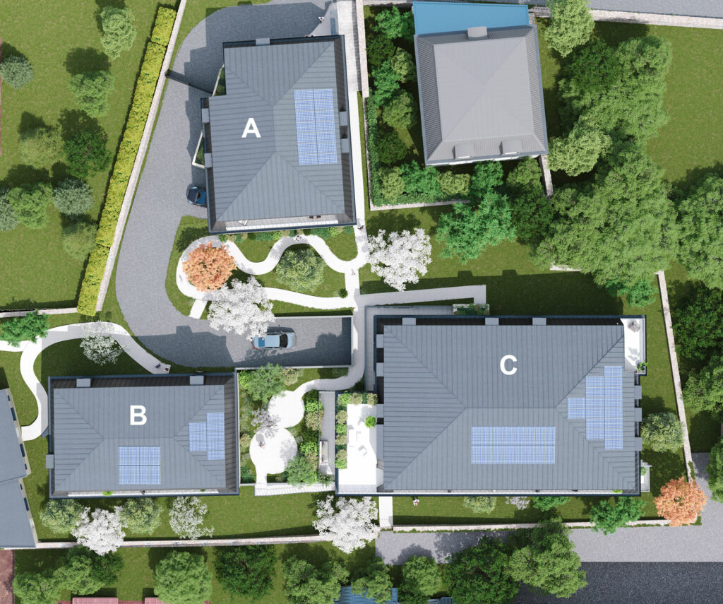 Les espaces de vies des logements sont éloignés des axes de circulation, ce qui offre à la résidence calme et sérénité par sa vue dégagée. Complété de nombreux garages entièrement dissimulés sous les bâtiments, le programme laisse une large place aux espaces verts avec un parc arboré soigneusement planté autour et au sein des bâtiments.